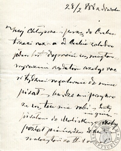 List Zofii z Fredrów Szeptyckiej do Stanisława Szeptyckiego