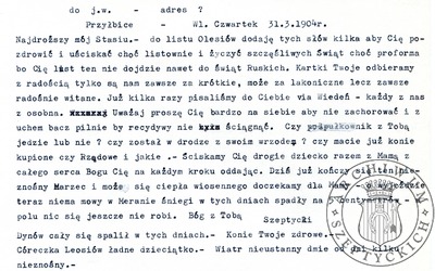 20-04-1944 List Kazimierza Szeptyckiego (późniejszego Ojca Klemensa Szeptyckiego) do Anny Szeptyckiej