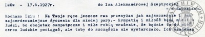 17-06-1927 List Kazimierza Szeptyckiego (późniejszego Ojca Klemensa Szeptyckiego) do Izabelli z Sobańskich Aleksandrowej Szeptyckiej