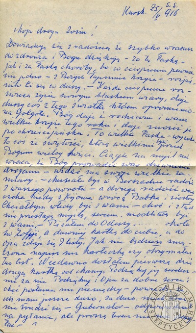 List Metropolity Andrzeja Szeptyckiego do Zofii Szeptyckiej