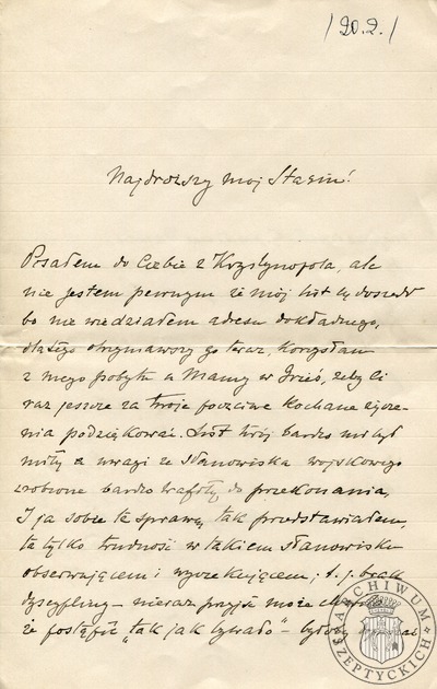 29-03-1941 List Kazimierza Szeptyckiego (późniejszego Ojca Klemensa Szeptyckiego) do Stanisława Szeptyckiego