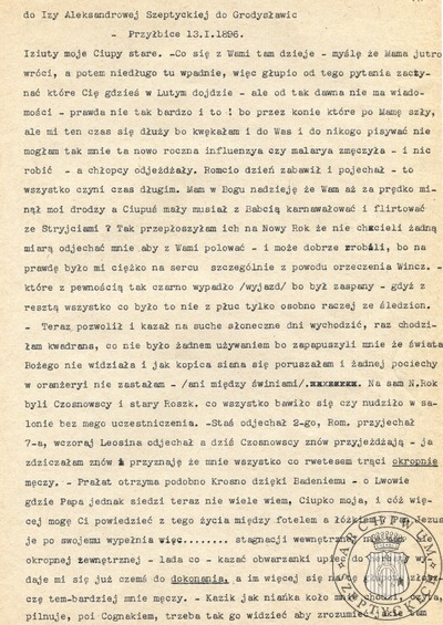 List Zofii z Fredrów Szeptyckiej do Izabelli z Sobańskich Aleksandrowej Szeptyckiej
