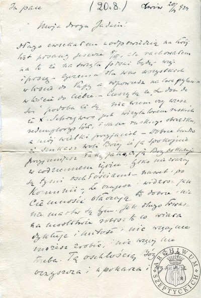 29-10-1904 List Jana Kantego Szeptyckiego do Stanisława Szeptyckiego. Dopisek Michaliny z Szeptyckich Władysław