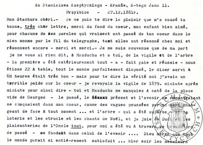 05-01-1925 List Metropolity Andrzeja Szeptyckiego do Marii z Sapiehów Stanisławowej Szeptyckiej i Stanisława Szeptyckiego
