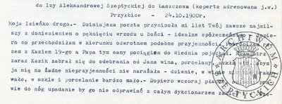List Zofii z Fredrów Szeptyckiej do Stanisława Szeptyckiego