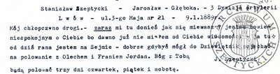 List Jana Kantego Szeptyckiego do Stanisława Szeptyckiego