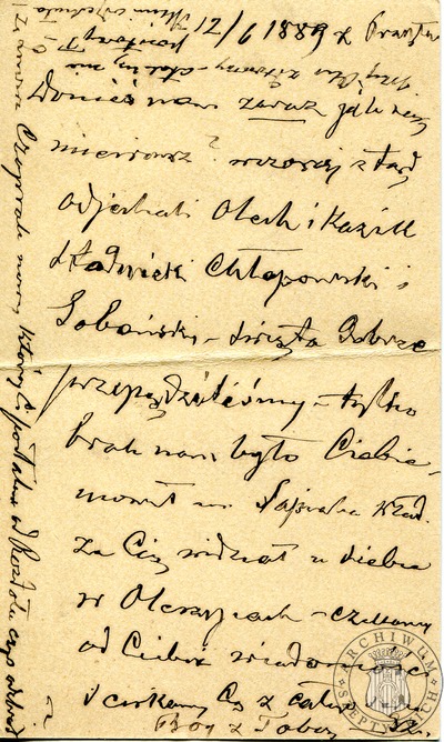 22-08-1900 List Zofii z Fredrów Szeptyckiej do Aleksandra Szeptyckiego i Izabelli z Sobańskich Aleksandrowej Szeptyckiej