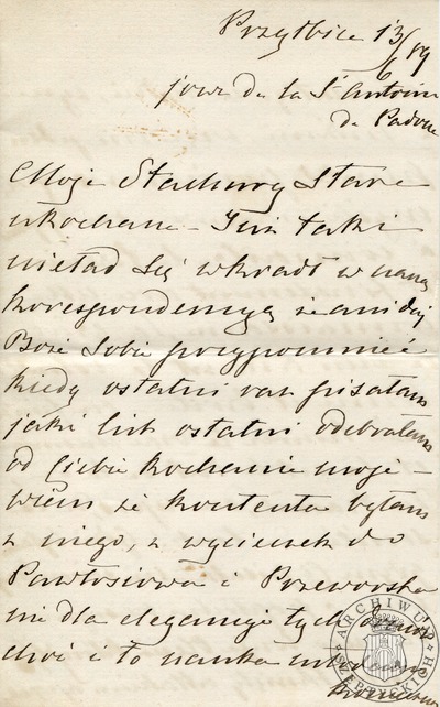 List Zofii z Fredrów Szeptyckiej do Aleksandra Szeptyckiego