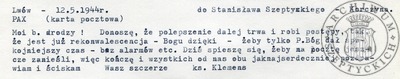 12-05-1944 List Kazimierza Szeptyckiego (późniejszego Ojca Klemensa Szeptyckiego) do Stanisława Szeptyckiego