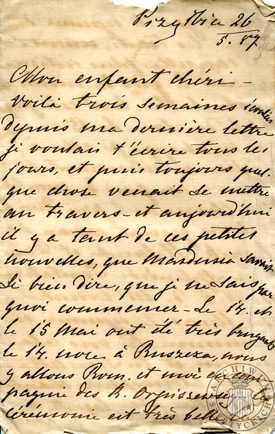 List Zofii z Fredrów Szeptyckiej do Stanisława Szeptyckiego