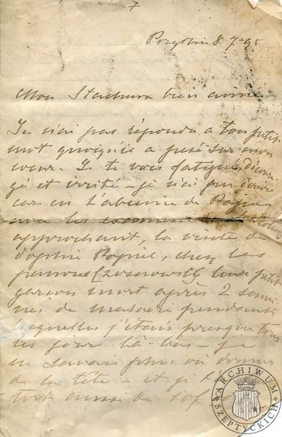 24-09-1902 List Zofii z Fredrów Szeptyckiej do Aleksandra Szeptyckiego i Izabelli z Sobańskich Aleksandrowej Szeptyckiej