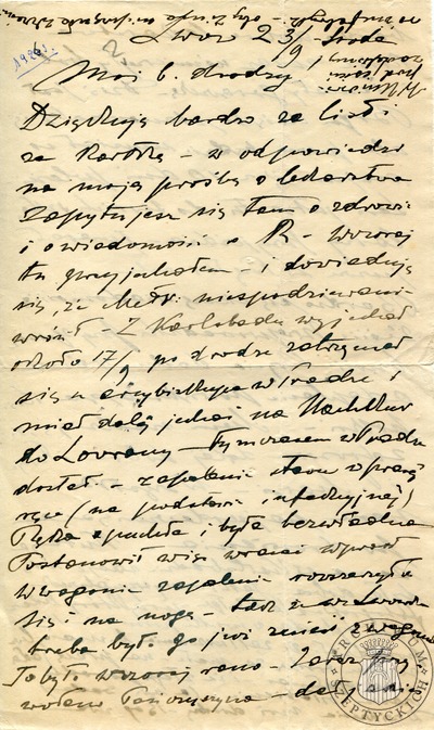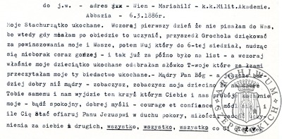 List Zofii z Fredrów Szeptyckiej do Stanisława Szeptyckiego
