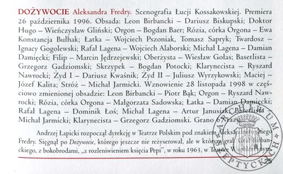 Prace reżyserskie Andrzeja Łapickiego w Teatrze Polskim w Warszawie - Dożywocie