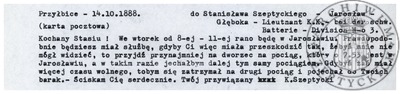 14-10-1888 List Kazimierza Szeptyckiego (późniejszego Ojca Klemensa Szeptyckiego) do Stanisława Szeptyckiego