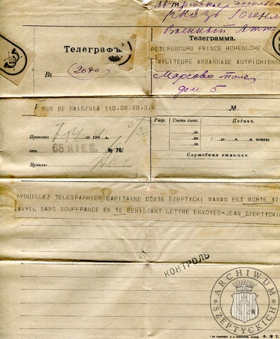 04-04-1887 List Kazimierza Szeptyckiego (późniejszego Ojca Klemensa Szeptyckiego) do Stanisława Szeptyckiego
