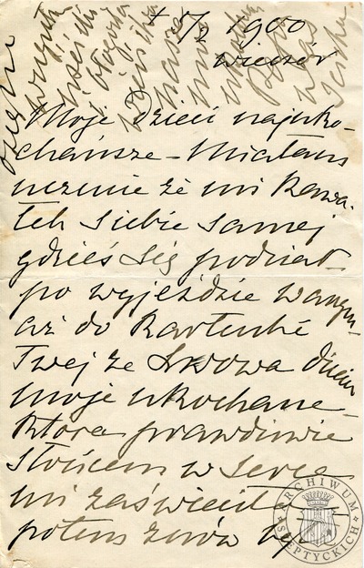 05-02-1900 List Zofii z Fredrów Szeptyckiej do Aleksandra Szeptyckiego i Izabelli z Sobańskich Aleksandrowej Szeptyckiej