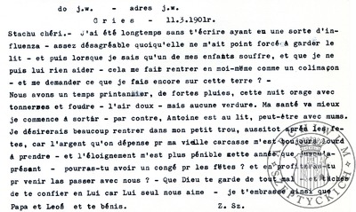 List Zofii z Fredrów Szeptyckiej do Stanisława Szeptyckiego