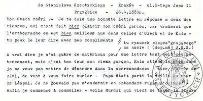 List Zofii z Fredrów Szeptyckiej do Stanisława Szeptyckiego