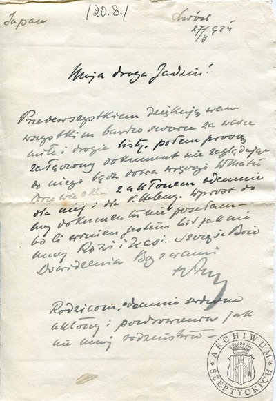 15-09-1904 List Kazimierza Szeptyckiego (późniejszego Ojca Klemensa Szeptyckiego) do Stanisława Szeptyckiego