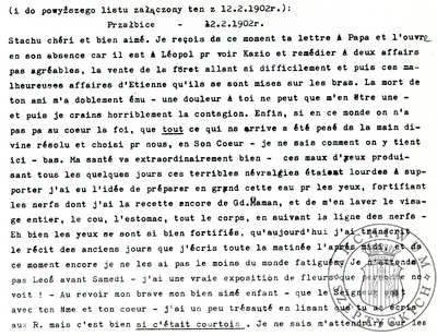 16-04-1882 List Zofii z Fredrów Szeptyckiej do Stanisława Szeptyckiego. Do listu dołączono wcześniejszy Stanisława do matki, w którym podkreślono błędy