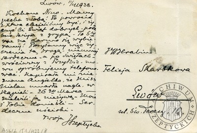 26-01-1925 List Kazimierza Szeptyckiego (późniejszego Ojca Klemensa Szeptyckiego) do Stanisławy z Olizarów Stanisławowej Szeptyckiej i Stanisława Szeptyckiego