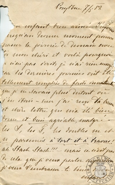 22-08-1900 List Zofii z Fredrów Szeptyckiej do Aleksandra Szeptyckiego i Izabelli z Sobańskich Aleksandrowej Szeptyckiej