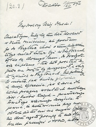 List Zofii z Fredrów Szeptyckiej do Stanisława Szeptyckiego