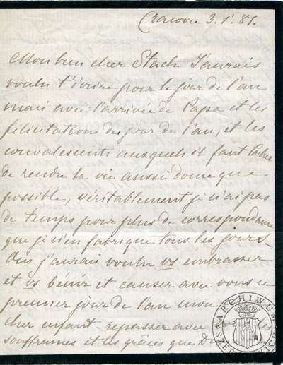 List Zofii z Fredrów Szeptyckiej do Stanisława Szeptyckiego