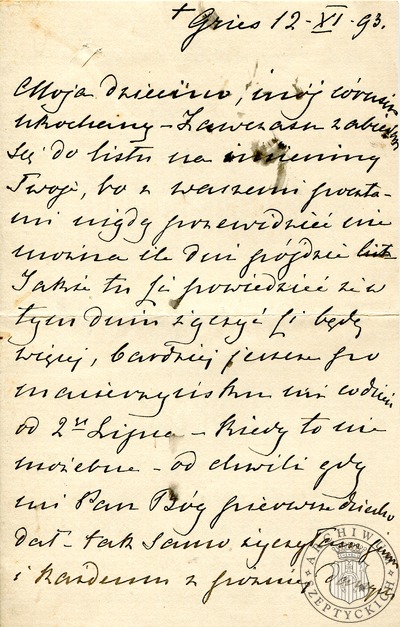 11-12-1923 List Kazimierza Szeptyckiego (późniejszego Ojca Klemensa Szeptyckiego) do Aleksandra Szeptyckiego