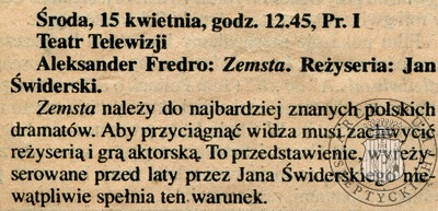 Prace reżyserskie Andrzeja Łapickiego w Teatrze Polskim w Warszawie - Intryga…