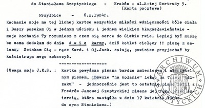 List Zofii z Fredrów Szeptyckiej do Stanisława Szeptyckiego