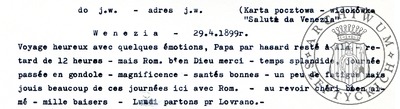 29-10-1904 List Jana Kantego Szeptyckiego do Stanisława Szeptyckiego. Dopisek Michaliny z Szeptyckich Władysław