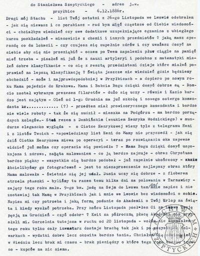 26-01-1925 List Kazimierza Szeptyckiego (późniejszego Ojca Klemensa Szeptyckiego) do Stanisławy z Olizarów Stanisławowej Szeptyckiej i Stanisława Szeptyckiego