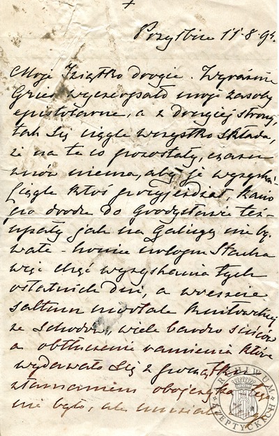 11-08-1894 List Zofii z Fredrów Szeptyckiej do Izabelli z Sobańskich Aleksandrowej Szeptyckiej i Aleksandra Szeptyckiego
