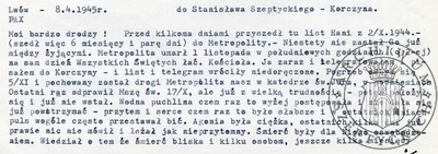 08-04-1945 List Kazimierza Szeptyckiego (późniejszego Ojca Klemensa Szeptyckiego) do Stanisława Szeptyckiego