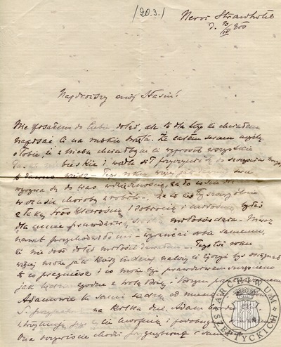 List Metropolity Andrzeja Szeptyckiego do Stanisława Szeptyckiego