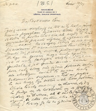 List Metropolity Andrzeja Szeptyckiego do Jadwigi Szeptyckiej