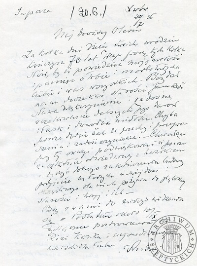 List Metropolity Andrzeja Szeptyckiego do Aleksandra Szeptyckiego