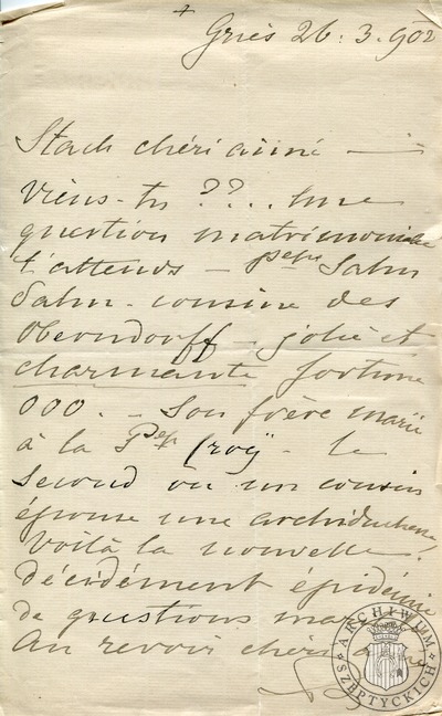 List Zofii z Fredrów Szeptyckiej do Stanisława Szeptyckiego
