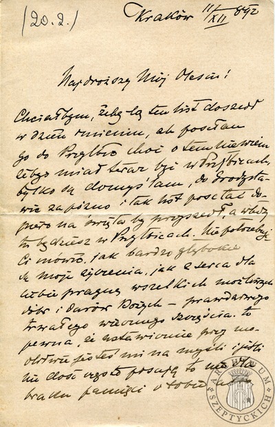 List Metropolity Andrzeja Szeptyckiego do Stanisława Szeptyckiego
