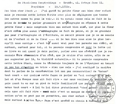 19-04-1882 List Zofii z Fredrów Szeptyckiej do Stanisława Szeptyckiego. Do powyższego listu dołączony jest list Stanisława do Matki, datowany 16.04.1882